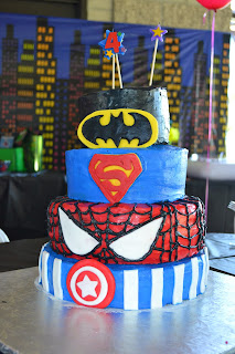As you will see in an upcoming blog post, each year I work very hard on H's birthday cake. It is a labor of love for sure! This year I made the mistake of showing H some superhero cakes on Pinterest. He immediately decided on a four tiered cake (YES - you read that right - 4 TIERS!) but quickly told me he didn't like the Spiderman tier. He didn't want the Spiderman logo but instead wanted Spiderman's eyes. It was my brilliant (note the sarcasm - not brilliant at all because it meant A LOT of extra work!) idea to make the layers of cake of each tier color coordinated to the superhero. OY VEY!